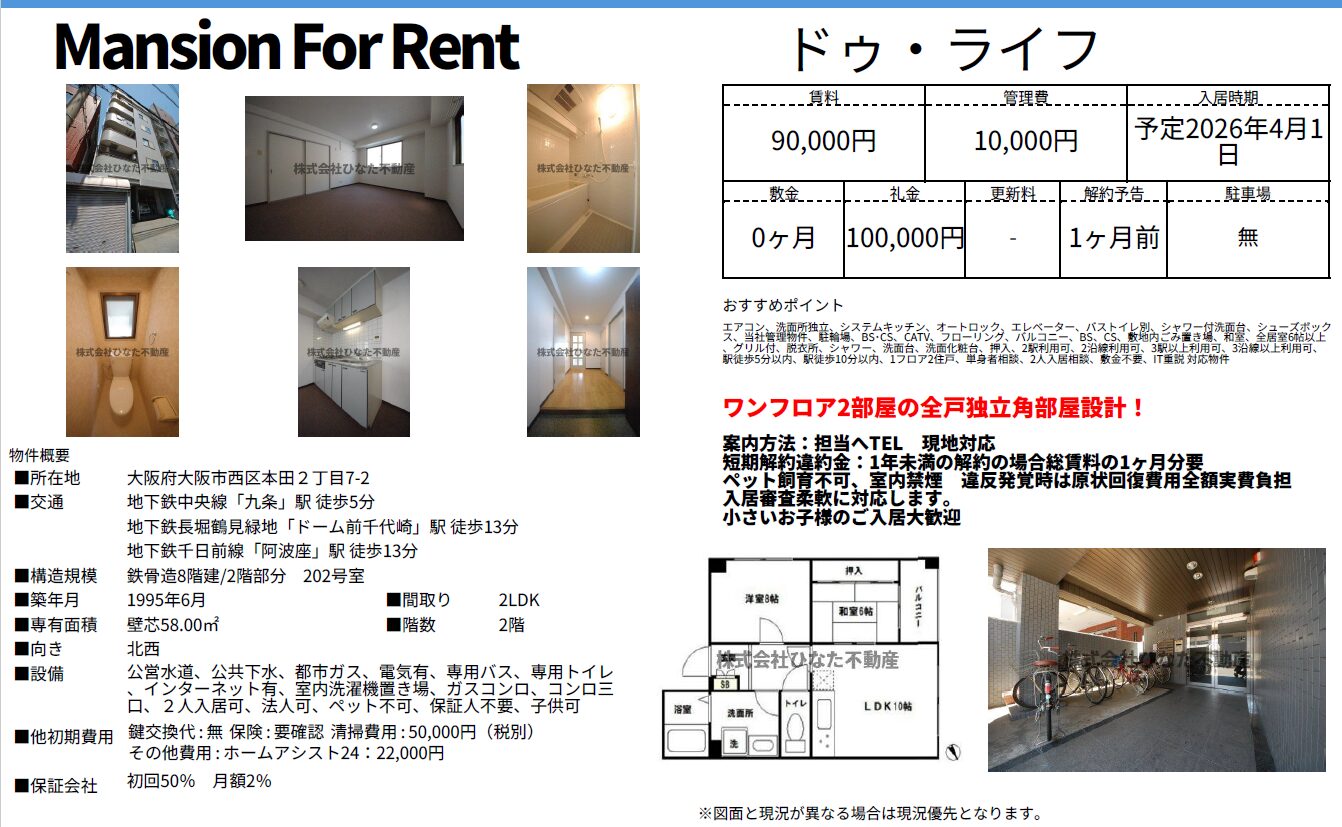 大阪メトロ中央線 九条駅から徒歩約5分の立地!